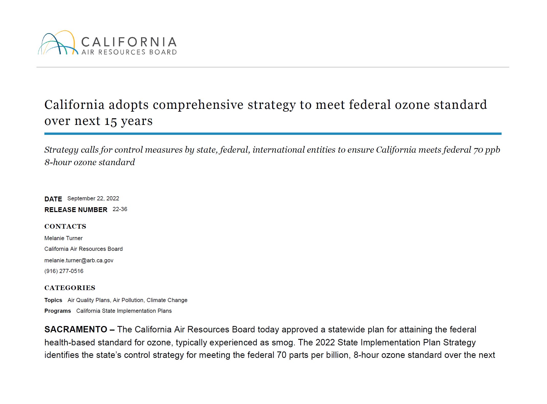 CARB press release snapshot